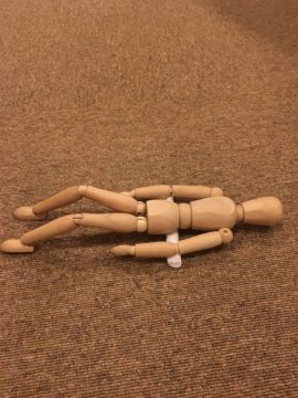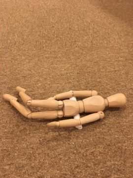 丸めたバスタオルをお尻と腰の間ぐらいに置いて、その上に仰向けで膝を立て寝転びます。