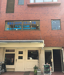 Korindoの隣、お弁当屋さんの向かいの建物2階になりますので美容室さんとお花屋さんの間の階段を、お上がりください。
