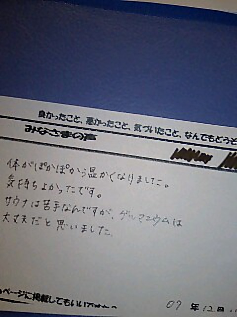 ゲルマ温浴を初めてしましたが、苦しかったり熱すぎることもなく温泉につかってるようでした。