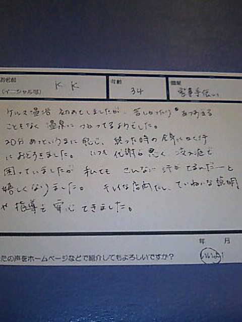 (吹田市 K.Kさん 34歳 家事手伝い 女性)