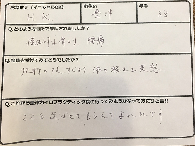 Q.これから豊津カイロプラクティック院にいってみようかなって方にひと言‼